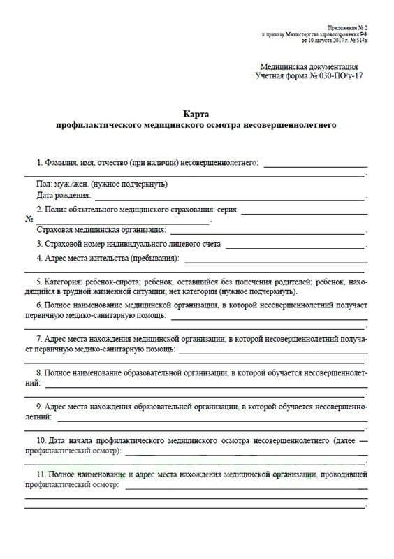 У каждого несовершеннолетнего пациента, стоящего на учете в определенном медицинском учреждении, должна быть карта 030 поу. Она открывается для каждого заболевания – если обращений, диагнозов много, то и справок будет несколько.